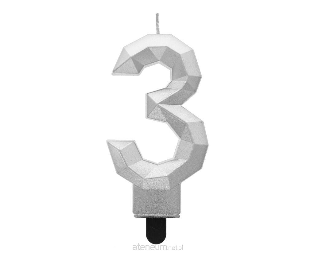 Świeczka cyferka 7 - Diament metalik srebrny 7,6cm