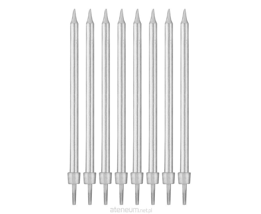 świeczki urodzinowe na tort, długie, srebrne, 8 szt.