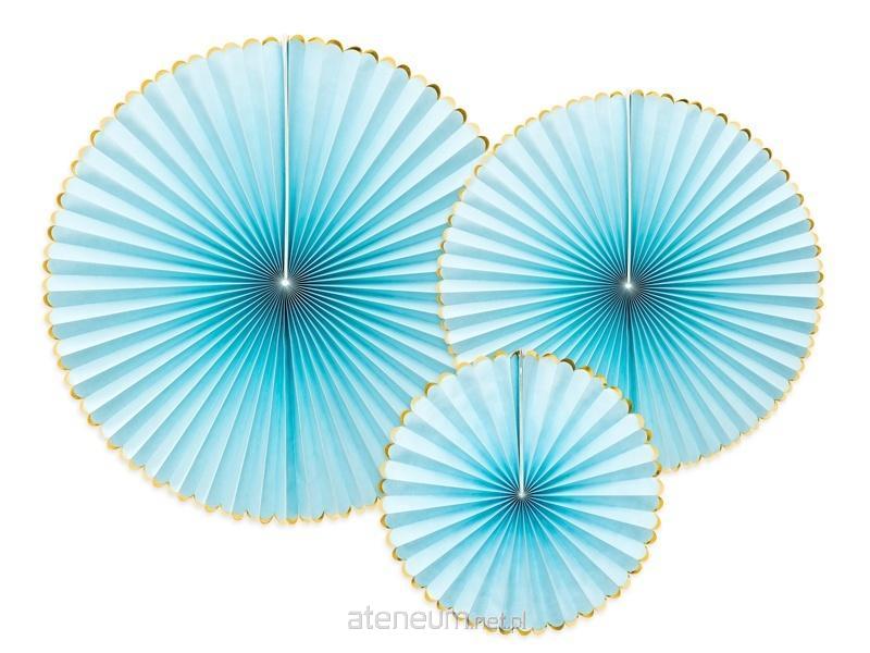 Rozety dekoracyjne Yummy w kolorze jasnoniebieskim ze złotymi brzegami, średnice ok.: 40 cm, 32 cm i 23 cm.(1 op. / 3 szt.)