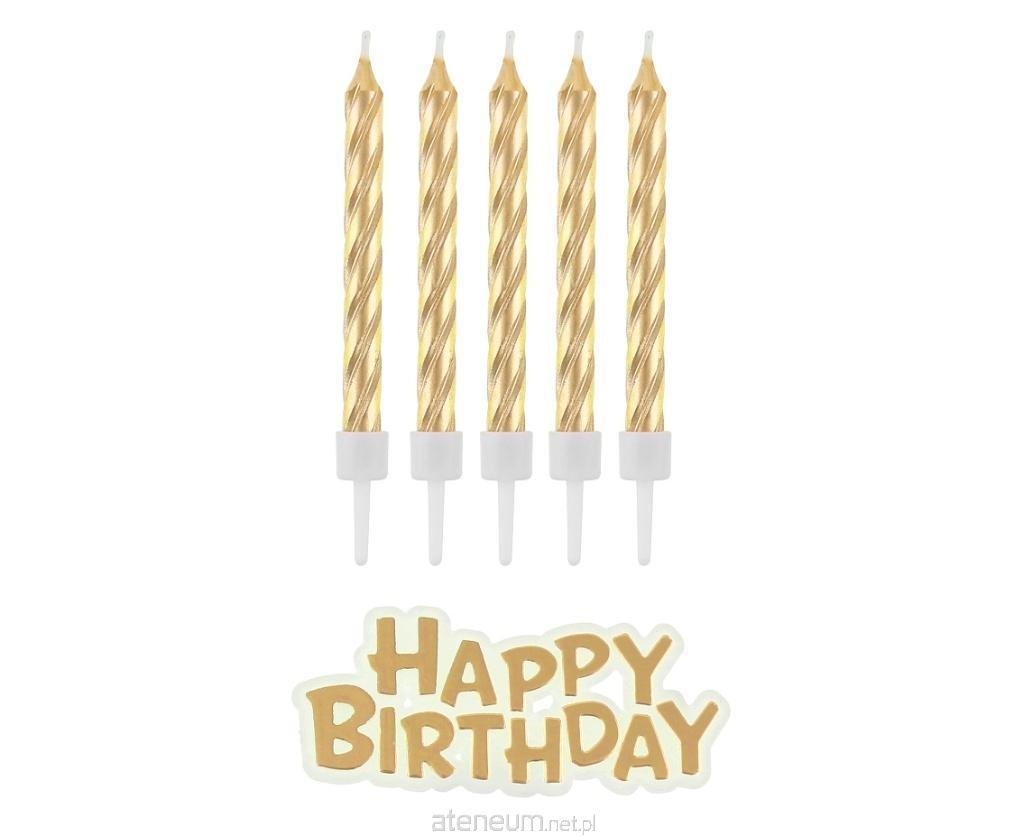 świeczki urodzinowe na tort złote z podstawkami
