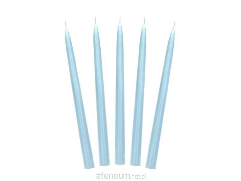 Świeca stożkowa matowa w kolorze błękitnym, wysokość 24 centymetry. Czas palenia 1 sztuki około 5 godzin.(1 op. / 10 szt.)