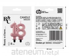 Świeczka B&C cyferka 18 metalik różowo-złota 8cm