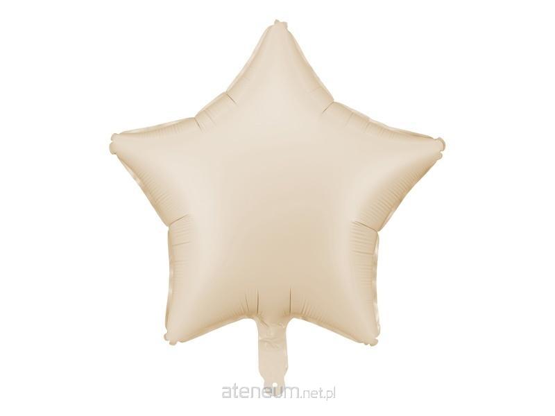 Balon foliowy matowy Gwiazdka w kolorze jasnego beżu, rozmiar ok. 48 cm (19''). Do napompowania powietrzem i helem. Zestaw zawiera słomkę.