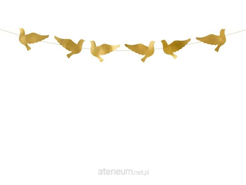 Przeszywana girlanda Gołębie wykonana z papieru w kolorze złotym lustrzanym, długość ok. 112 cm, wysokość ok. 8,1 cm.