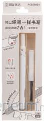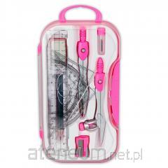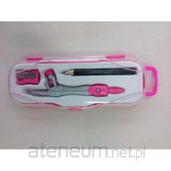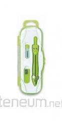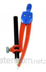 Cyrkiel szkolny, przeznaczony do kreślenia okręgów o średnicy do 340 mm. Wyposażony jest w grafit o średnicy 2 mm oraz zestaw zapasowych grafitów w plastikowym pojemniczku. Cyrkiel wykonany jest ze stopu cynku z wykończeniem imitującym nikiel. Plastikowy uchwyt cyrkla dostępny jest w kolorze czarnym, czerwonym, granatowym i pomarańczowym.