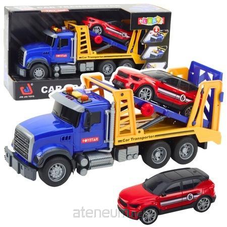 CIĘŻARÓWKA Z LAWETĄ SAMOCHÓD ŚWIATŁA DŹWIĘKI Duża laweta transporter to świetna propozycja dla małych miłośników motoryzacji, którzy uwielbiają dynamiczną i kreatywną zabawę. Solidna konstrukcja, efektowny wygląd oraz liczne funkcje sprawiają, że zestaw z pewnością przyciągnie uwagę każdego dziecka. Zabawka została wyposażona w realistyczne światła oraz dźwięki, które aktywowane są za pomocą przycisku umieszczonego na kabinie - to element, który nie tylko wzbogaca zabawę, ale także pobudza wyobraźnię i wprowadza elementy interaktywności. W zestawie znajdują się dwa sportowe auta osobowe, które można swobodnie ładować i zdejmować z przyczepy - to doskonały sposób na odgrywanie różnorodnych scenariuszy i rozwijanie kreatywności dziecka. Laweta posiada ruchome elementy odwzorowujące funkcje prawdziwego pojazdu transportowego, co sprawia, że zabawa jest jeszcze bardziej realistyczna. Całość została wykonana z trwałych, bezpiecznych materiałów, odpornych na codzienną intensywną zabawę. Dzięki kompaktowym, ale odpowiednim rozmiarom, pojazd świetnie nadaje się zarówno do zabawy w domu, jak i na świeżym powietrzu. Zasilanie na baterie umożliwia natychmiastowe korzystanie z funkcji dźwiękowych i świetlnych - zestaw gotowy jest do działania zaraz po rozpakowaniu. SPECYFIKACJA: Rodzaj: Laweta transporter z autami Wymiary lawety: 30 x 7 x 9 cm Zasilanie: 3 x baterie AG13 (w zestawie) Efekty: Świetlne i dźwiękowe Materiał: Tworzywo sztuczne Wymiary opakowania: 35 x 18,5 x 11,5 cm ZAWARTOŚĆ ZESTAWU: 1 x laweta transporter 1 x samochód osobowy 3 x bateria AG13