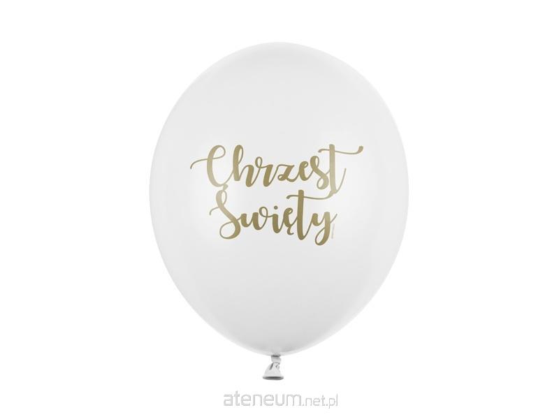 Balony Strong Chrzest Święty z nadrukami, zestaw zawiera 1 wzór: pastelowy w kolorze Pure White ze złotym nadrukiem, średnica ok. 30 cm.(1 op. / 50 szt.)