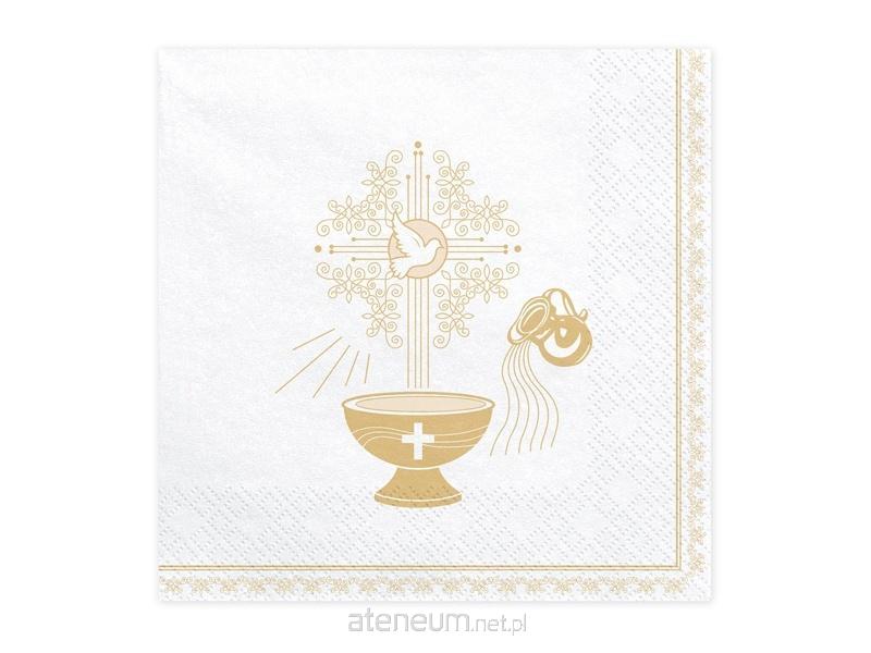 "Serwetki Chrzest Święty papierowe białe ze złoto-różowym nadrukiem, wymiary po rozłożeniu ok. 33 x 33 cm, wymiary po złożeniu ok. 16,5 x 16,5 cm. (1 op. / 20 szt.)"
