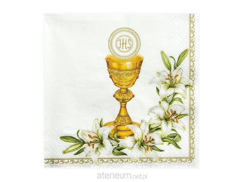 Serwetki trójwarstwowe Kielich w kolorze białym z kolorowym nadrukiem, wymiary 33x33 centymetry.(1 op. / 20 szt.)