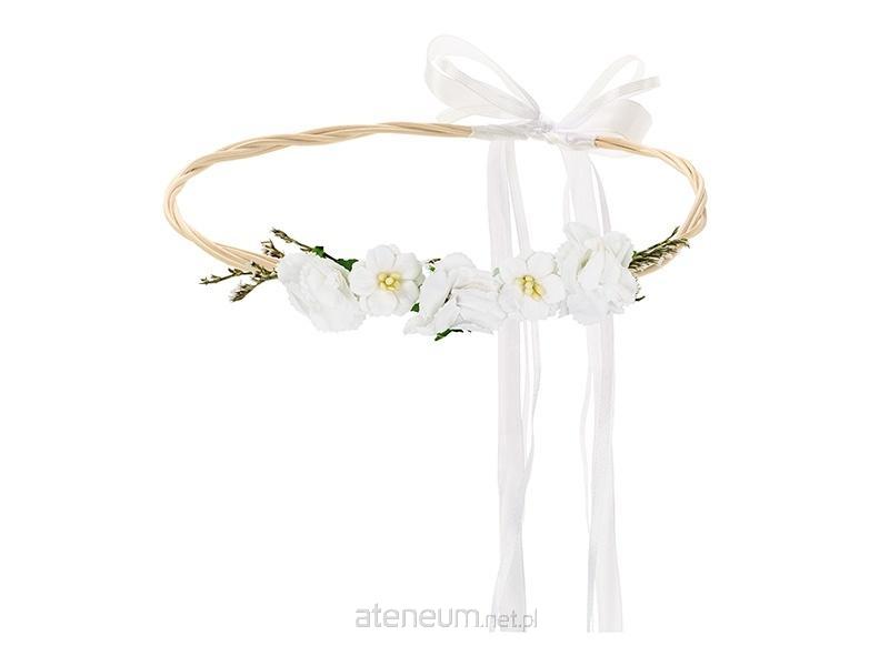Wianek z kwiatami w kolorze białym. Rozmiar wianka jest regulowany.