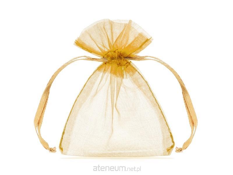 Ściągane woreczki z gładkiej organzy w kolorze złotym, wymiary ok. 7.5 x 10 cm. Idealne dla gości weselnych.(1 op. / 10 szt.)