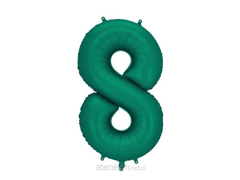 Balon foliowy satynowy Cyfra 8 w kolorze butelkowej zieleni, rozmiar przed napompowaniem ok. 100 cm (39''), rozmiar po napompowaniu ok. 86 cm (34''). Do napompowania powietrzem i helem. Zestaw zawiera słomkę. Balon jest samouszczelniający się. Posiada haczyki ułatwiające montaż balona do dekoracji.