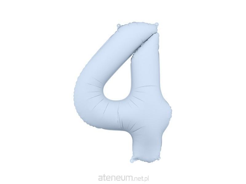 Balon foliowy matowy Cyfra 4 w kolorze mglistym niebieskim, rozmiar przed napompowaniem ok. 100 cm (39''), rozmiar po napompowaniu ok. 86 cm (34''). Do napompowania powietrzem i helem. Zestaw zawiera słomkę. Balon jest samouszczelniający się. Posiada haczyki ułatwiające montaż balona do dekoracji.