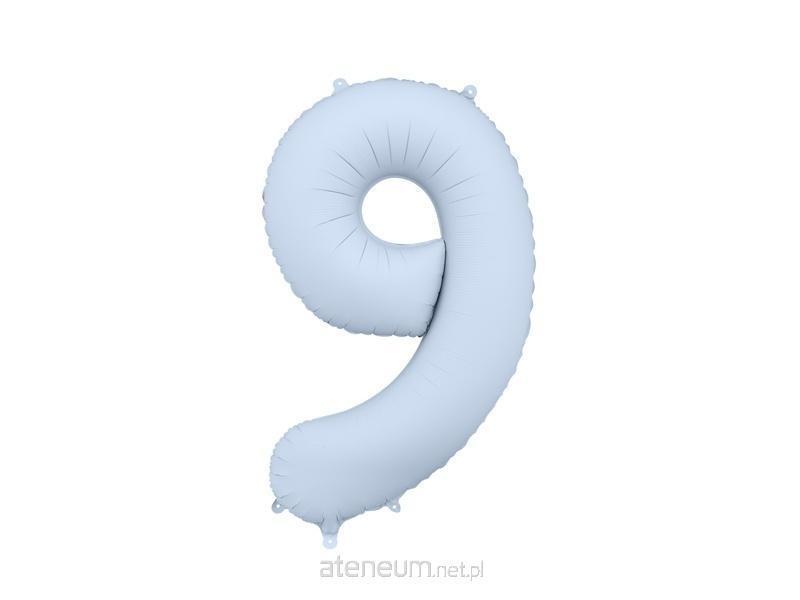 Balon foliowy matowy Cyfra 9 w kolorze mglistym niebieskim, rozmiar przed napompowaniem ok. 100 cm (39''), rozmiar po napompowaniu ok. 86 cm (34''). Do napompowania powietrzem i helem. Zestaw zawiera słomkę. Balon jest samouszczelniający się. Posiada haczyki ułatwiające montaż balona do dekoracji.