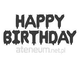 Balon foliowy matowy Happy Birthday w kolorze czarnym, wymiary ok. 340 x 35 cm (134 x 14''). Do napompowania powietrzem.