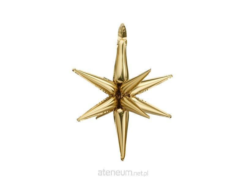 Balon foliowy matowy Gwiazda 3D w kolorze złotym, rozmiar przed napompowaniem ok. 53 x 62 cm (21 x 24''), rozmiar po napompowaniu ok. 50 cm (20''). Do napompowania powietrzem. Zestaw zawiera słomkę.