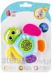 GRZECHOTKA GRYZAK DLA NIEMOWLĄT KOLOROWY Grzechotka w kształcie hantelka z funkcją gryzaka to wielofunkcyjna zabawka zaprojektowana specjalnie dla niemowląt. Łączy w sobie funkcje rozwijające zmysły dziecka z praktycznym zastosowaniem w okresie ząbkowania. Kolorowa, lekka i bezpieczna - przyciąga uwagę, pobudza ciekawość i wspiera rozwój od pierwszych miesięcy życia. Grzechotka wykonana została z bezpiecznych materiałów, a jej końce pokryte są miękką gumą, która pełni funkcję gryzaka. Wewnątrz znajdują się kolorowe kuleczki, które przy poruszaniu wydają delikatne dźwięki. Różnorodne faktury i intensywne kolory stymulują wzrok, słuch i dotyk, zachęcając dziecko do interakcji oraz wspierając rozwój koordynacji wzrokowo-ruchowej. Dzięki ergonomicznemu kształtowi i niewielkiej wadze grzechotka jest łatwa do trzymania przez małe rączki. Idealna zarówno do zabawy w domu, jak i w podróży. To nie tylko praktyczny gryzak, ale także pierwsza zabawka sensoryczna wspomagająca rozwój maluszka. W opakowaniu zbiorczym znajduje się 8 zabawek. Sprzedawane osobno. SPECYFIKACJA: Wymiary grzechotki: 16 cm x 7 cm Wymiary opakowania zbiorczego: 35,5 x 30 x 7cm Materiał: tworzywo sztuczne i guma Funkcje: grzechotka, gryzak, stymulacja sensoryczna ZAWARTOŚĆ ZESTAWU: Grzechotka z funkcją gryzaka Kolorowe kuleczki w środku