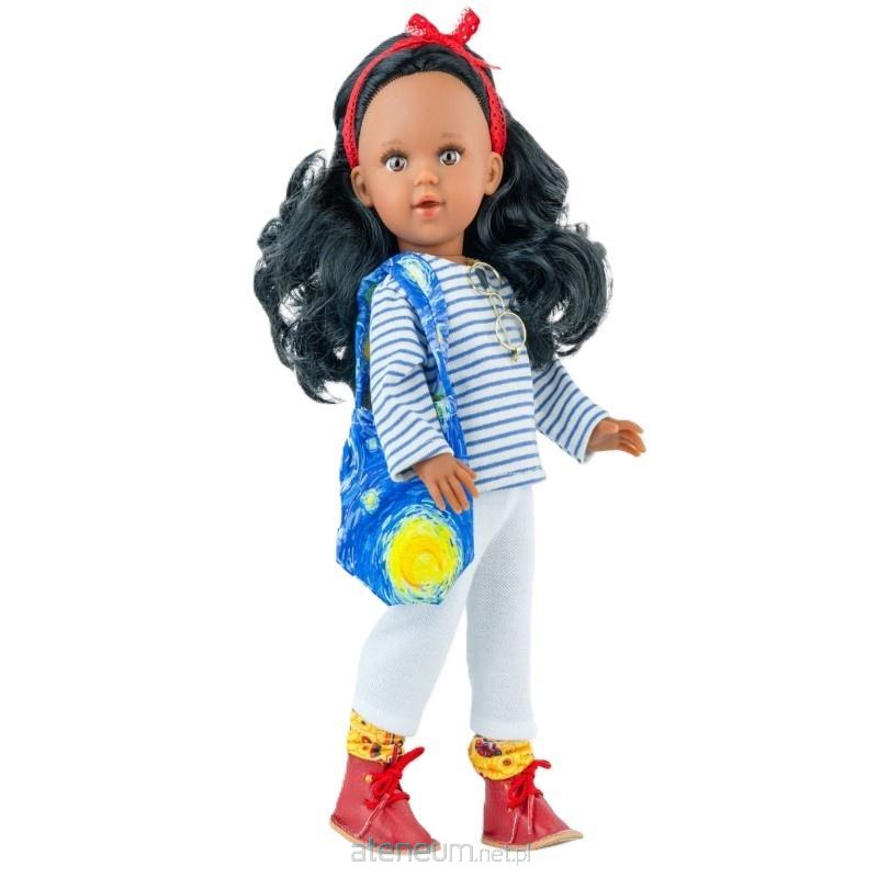 Szukasz na prezent dla dziewczynki ślicznej, wysokiej jakości lalki hiszpańskiej, która urzeka urodą, modnym strojem oraz długimi, gęstymi włosami idealnymi do projektowania fryzur? Marina 1508 cenionej marki Marina & Pau to dopracowana w każdym detalu lalka - przyjaciółka, która sprawi radość każdej małej kolekcjonerce wyjątkowych zabawek. Polecamy dzieciom w wieku od lat trzech. Dlaczego lalka hiszpańska mulatka Marina & Pau 1508 jest jedyna w swoim rodzaju? Precyzja wykonania i szyty ręcznie, stylowy strój to tylko niektóre zalety lalki hiszpańskiej Marina & Pau 1508. Odkryj inne, istotne szczegóły: winylowy materiał jest przyjemny w dotyku, miękki i bezpieczny dla dziecka, przypominające prawdziwe, stale otwarte brązowe oczy są opatrzone długimi rzęsami i delikatnie namalowanymi brwiami, lśniące usta i zaróżowione policzki doskonale odwzorowują dziecięcą buzię, długie, lekko kręcone czarne włosy są idealne do czesania, głowa, ręce i nogi są ruchome, więc można lalę z łatwością posadzić i ułożyć w różnych pozach. Czym wyróżnia się strój lalki hiszpańskiej marki Marina & Pau? Winylowa lalka hiszpańska Marina & Pau 1508 urzeka modnym outfitem i akcesoriami: biała, miękka bluzka w niebieskie paseczki perfekcyjnie komponuje się z białymi spodniami, białe majteczki na gumeczce, bawełniane kolorowe skarpetki oraz czerwone sznurowane buty świetnie dopełniają całość looku, włosy są zebrane przy pomocy czerwonej opaski, w zestawie okulary oraz kolorowa materiałowa torba dla lalki. Wszystkie części garderoby można z łatwością zdjąć, a lalę przebrać lub wykąpać. Wybierz śliczną, wykonaną w Hiszpanii lalkę przyjaciółkę! Jeśli chcesz zaskoczyć dziecko unikalną lalką, zachwycającą urodą, idealną do czesania i kąpania, skuś się na zaprojektowaną i ręcznie malowaną w Hiszpanii dziewczynkę o imieniu Marina. Zapakowana jest w stylowo wyglądające, solidne pudełko z wieczkiem w różowo-beżowej kolorystyce, spełniające z powodzeniem funkcję opakowania prezentowego.