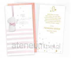 Otwierana kartka, pusta w środku, wykonana na papierze (z certyfikatem EFC) z wyraźnie widoczną fakturą. W zestawie ekologiczna koperta.