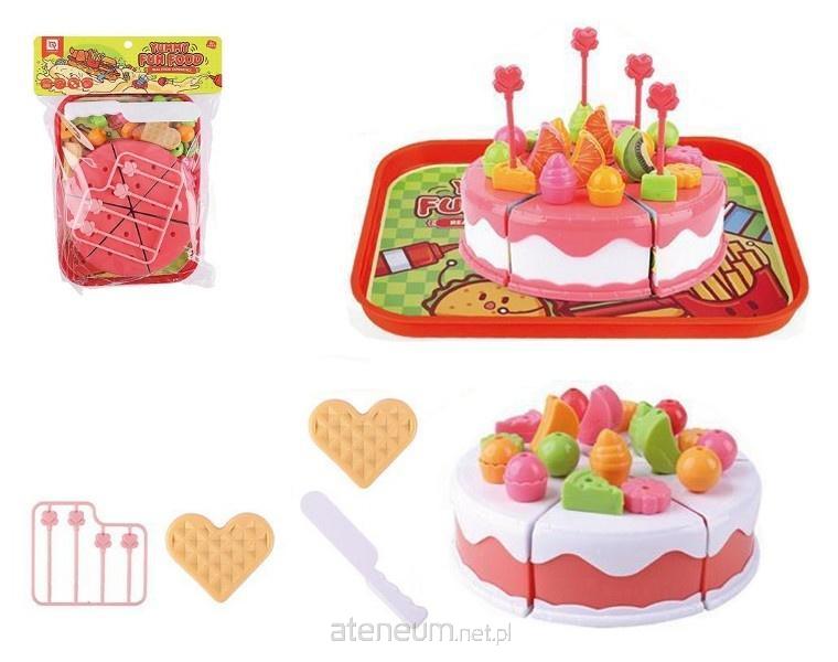 Zabawka tort (na rzepy) do przyozdabiania. W zestawie znajdują się owoce, patyczki z serduszkami i inne ozdoby, dzięki którym tort będzie wyglądał apetycznie. Poza tym w zestawie znajduje się nóż do torta i ciasteczka. Produkt zapakowany w przezroczysty worek. Zabawka dla dzieci od 3 lat. Podane wymiary są wymiarami opakowania.