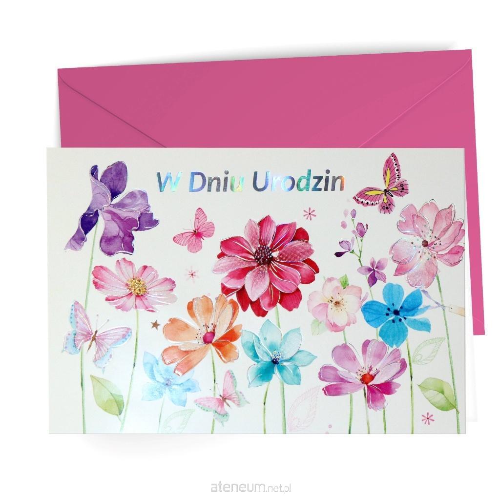 Kartka z kopertą, z życzeniami na urodziny. Opakowana folią open.