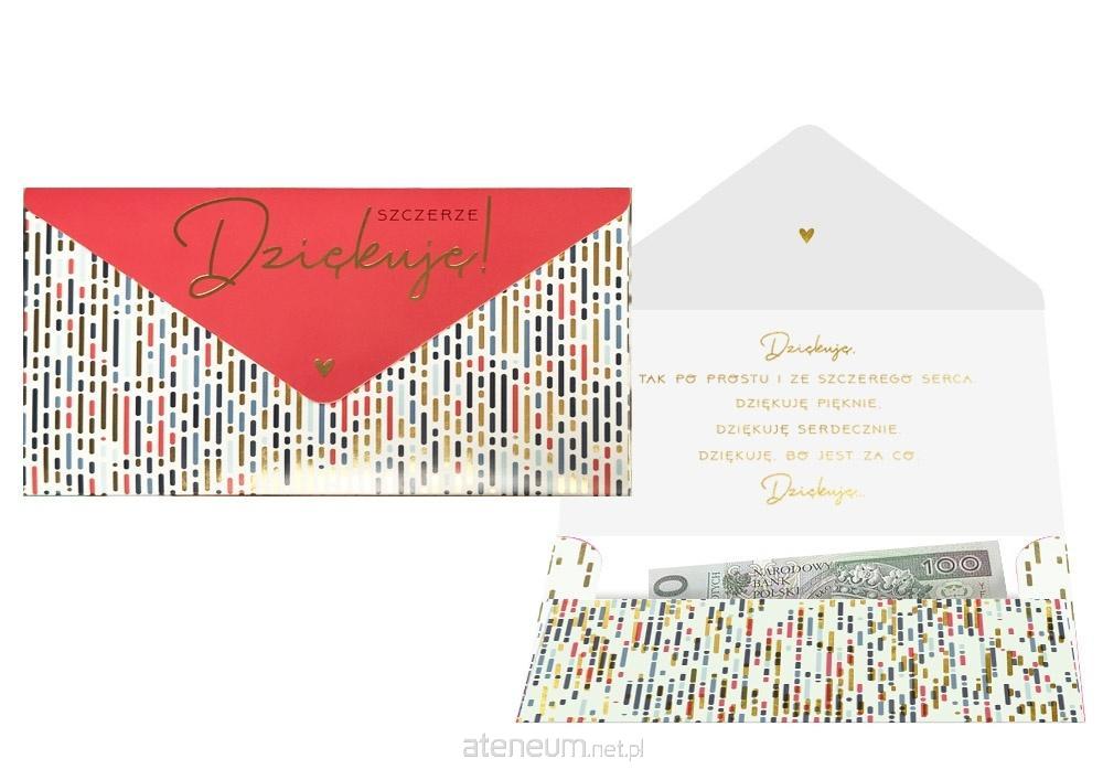 Koperta podarunkowa KOP-019 "Dziękuję" Koperta podarunkowa jest eleganckim sposobem na podarowanie bliskiej osobie banknotu lub karty podarunkowej. Koperta jest kolorowa i uszlachetniona metalizowaną folią hot-stamp, jest solidnie wykonana i wyposażona w rzep, co umożliwia jej wielokrotne otwieranie i zamykanie. Koperta zawiera życzenia w środku. Specyfikacja: wymiary: 20 x 10,5 cm (po złożeniu) wnętrze: życzenia w środku okazja: podziękowania Koperty są pakowane po 3 szt.