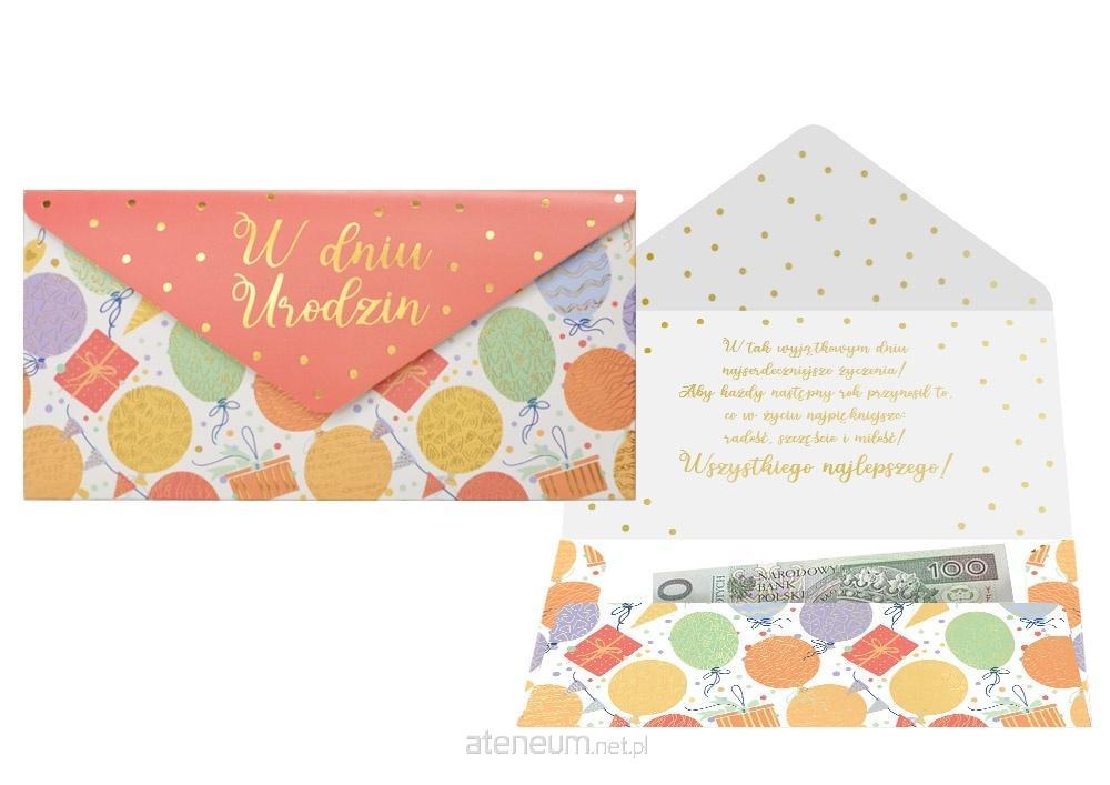 Koperta podarunkowa KOP-022 "W dniu urodzin" Koperta podarunkowa jest eleganckim sposobem na podarowanie bliskiej osobie banknotu lub karty podarunkowej. Koperta jest kolorowa i uszlachetniona metalizowaną folią hot-stamp, jest solidnie wykonana i wyposażona w rzep, co umożliwia jej wielokrotne otwieranie i zamykanie. Koperta zawiera życzenia w środku. Specyfikacja: wymiary: 20 x 10,5 cm (po złożeniu) wnętrze: życzenia w środku okazja: urodziny Koperty są pakowane po 3 szt.