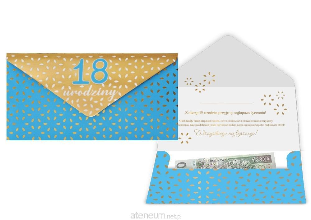 Koperta podarunkowa KOP-023 "18 urodziny" Koperta podarunkowa jest eleganckim sposobem na podarowanie bliskiej osobie banknotu lub karty podarunkowej. Koperta jest kolorowa i uszlachetniona metalizowaną folią hot-stamp, jest solidnie wykonana i wyposażona w rzep, co umożliwia jej wielokrotne otwieranie i zamykanie. Koperta zawiera życzenia w środku. Specyfikacja: wymiary: 20 x 10,5 cm (po złożeniu) wnętrze: życzenia w środku okazja: osiemnastka, urodziny Koperty są pakowane po 3 szt.