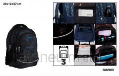 w środku przedniej komóry przegródki na przybory, telefon, karabińczyk na klucze