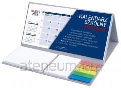 "Kalendarz biurkowy typu namiot, kalendarium w układzie miesięcznym, 56 stron + okładka. Na spirali, papier w środku kreda mat. Wymiary 185x182 mm"