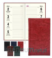 Kalendarz kieszonkowy w miękkiej skóropodobnej oprawie. Układ kalendarium 2-tygodniowy. 80 stron. Wymiary 75x115 mm