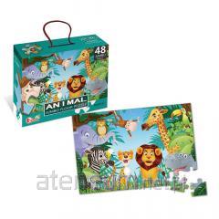 Puzzle z serii z dinozaurami to propozycja dla dzieci powyżej 4 roku życia. Zestaw składa się z 2 układanek, każda po 48 elementów. Pojedynczy obrazek po ułożeniu ma wymiary 26 x 18 cm. Puzzle zostały wykonane z materiałów wysokiej jakości i są odporne na zginanie oraz uszkodzenia. Elementy układanki zostały wycięte laserowo, dzięki czemu można z łatwością je do siebie dopasować. Wymiary opakowania 27 x 19 x 4 cm. Wyprodukowano w Czechach.