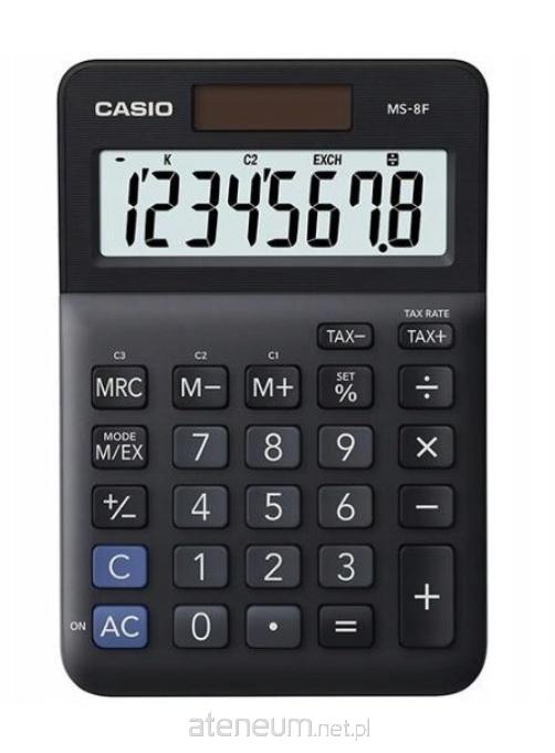 Wyświetlacz 8 cyfr,marżowy sposób liczenia %,TAX+/-,niezależna pamieć,Konwersja walut,wskaźnik wykonywanego działania
