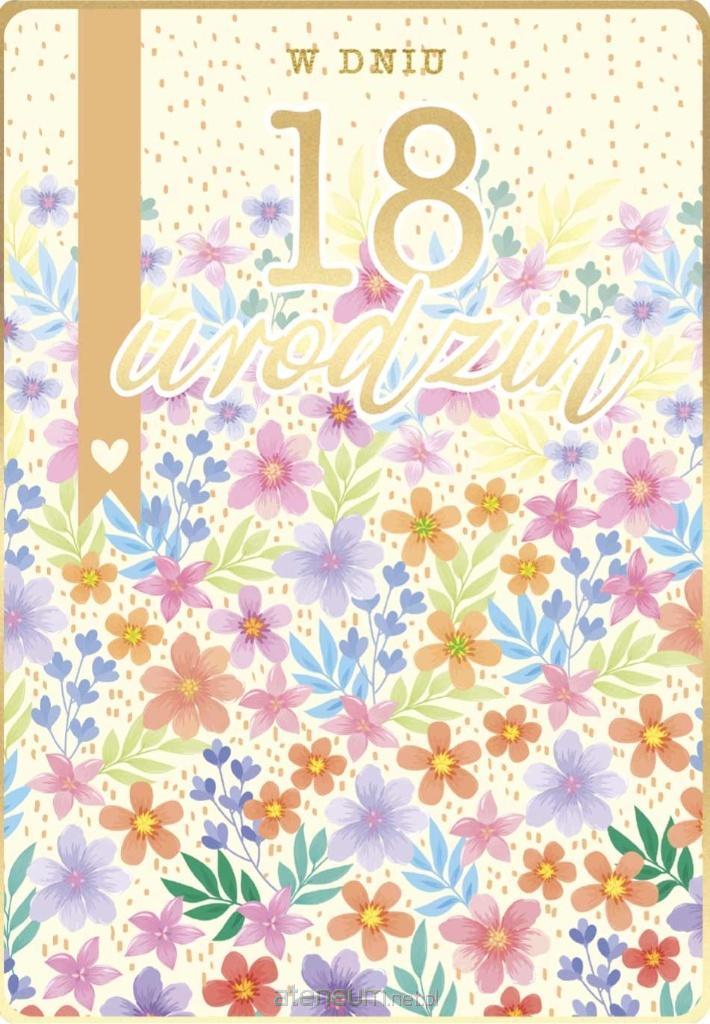 Kartka Dream Cards na Osiemnastkę DK-1288 Kartka B6 z ozdobnej serii Dream Cards - nieduża, ale robi wrażenie dzięki atrakcyjnej kolorystyce i ciekawym zdobieniom. To idealny wybór łączący przyjazną cenę z jakością. Cechy szczególne: wielkość: B6, 16.6 x 11.7 cm po złożeniu, koperta: w zestawie, kolorowa, zdobienia: kolorowe, różnorodne, bogate (w zależności od wzoru: przyklejane dekoracje, elementy biżuteryjne, odstawniki, metaliczne folie, tłoczenia itp.), okazja: osiemnastka, urodziny