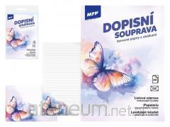Zestaw papeterii. Zawiera 10 kartek A4 z nadrukiem oraz 5 kopert C6 z nadrukiem. Cały zestaw jest zapakowany w twardą oprawkę z nadrukiem i zafoliowany, posiada również eurozawieszkę. Wymiar: 160mm x 220mm x 10mm (szer. x wys. x gł.) Wyprodukowano w UE.