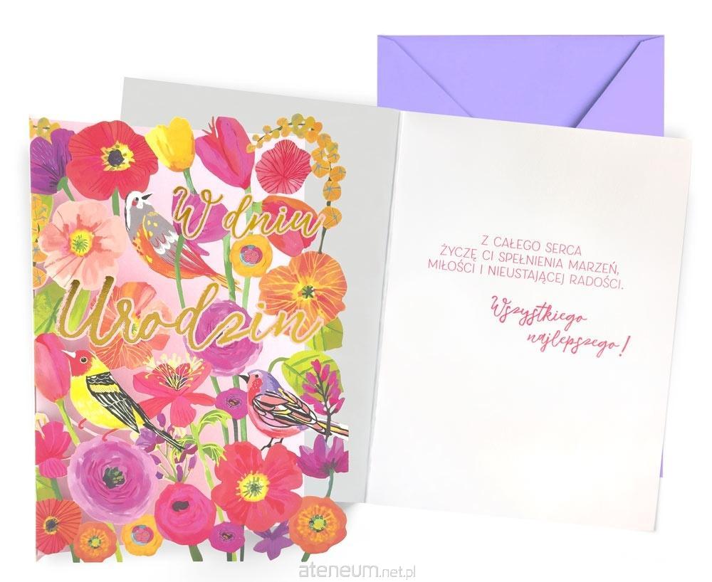 Kartka Dream Cards "W dniu urodzin" DK-1281 Kartka B6 z ozdobnej serii Dream Cards - nieduża, ale robi wrażenie dzięki atrakcyjnej kolorystyce i ciekawym zdobieniom. To idealny wybór łączący przyjazną cenę z jakością. Cechy szczególne: wielkość: B6, 16.6 x 11.7 cm po złożeniu, koperta: w zestawie, kolorowa, zdobienia: kolorowe, różnorodne, bogate (w zależności od wzoru: przyklejane dekoracje, elementy biżuteryjne, odstawniki, metaliczne folie, tłoczenia itp.), okazja: urodziny