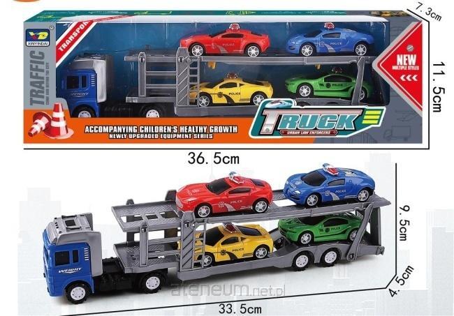 Przedstawiamy fantastyczny zestaw, który zachwyci każdego malucha marzącego o pracy w policji i fascynującego się dużymi pojazdami! Ten kolorowy zestaw zawiera solidną lawetę z przyczepą oraz aż cztery różnorodne policyjne autka: czerwone, niebieskie, żółte i zielone. Każdy samochodzik posiada realistyczne detale i policyjne oznaczenia, co dodatkowo uatrakcyjni zabawę. Laweta wyposażona jest w ruchomą platformę załadunkową, co umożliwia łatwe umieszczanie i zdejmowanie autek. Dziecko może wcielić się w rolę kierowcy ciężarówki transportującej ważne policyjne pojazdy na miejsce akcji. Zabawa tym zestawem nie tylko dostarcza mnóstwo radości, ale również rozwija wyobraźnię, koordynację wzrokowo-ruchową i umiejętności społeczne podczas zabawy z innymi. Wykonany z bezpiecznych i trwałych materiałów, zestaw jest idealny dla dzieci w wieku od 3 lat. To doskonały pomysł na prezent, który zapewni wiele godzin wciągającej i kreatywnej zabawy. Dodaj ten wyjątkowy zestaw do koszyka i spraw radość swojemu małemu bohaterowi!