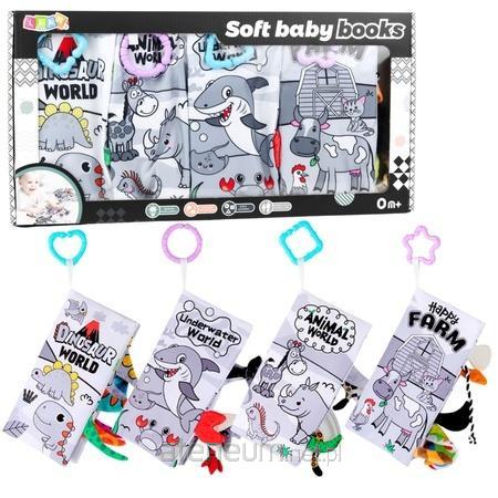 MIĘKKIE KSIĄŻECZKI SENSORYCZNE DLA NIEMOWLĄT ZESTAW 4 SZTUK Zestaw miękkich książeczek sensorycznych dla niemowląt to idealny wybór dla najmłodszych dzieci już od pierwszych dni życia. W skład zestawu wchodzą 4 różne książeczki o wymiarach 23 x 11,5 cm. Każda książeczka przedstawia inny temat: świat dinozaurów, zwierząt wodnych, zwierząt lądowych oraz farmę - co pobudza wyobraźnię malucha i pomaga mu stopniowo odkrywać różnorodność otaczającego go świata. Miękkie, przyjazne w dotyku materiały są całkowicie bezpieczne i dostosowane do delikatnej skóry niemowlęcia. Dzięki odpowiedniej konstrukcji każda książeczka posiada wystające elementy oraz szeleszczące strony, które wspierają rozwój sensoryczny dziecka - stymulują zmysł dotyku, słuchu i wzroku, zachęcając do aktywnego eksplorowania. Dodatkowo, każda książeczka wyposażona jest w praktyczny uchwyt, umożliwiający łatwe przymocowanie jej do wózka, łóżeczka lub fotelika samochodowego, co sprawia, że można zabrać je ze sobą dosłownie wszędzie. To doskonały pomysł na pierwszy edukacyjny prezent, który nie tylko umila czas, ale przede wszystkim wspiera rozwój dziecka na wczesnym etapie życia. Książeczki zachęcają do zabawy, rozwijają naturalną ciekawość, koncentrację oraz zdolności poznawcze malucha, a także tworzą świetną okazję do wspólnego spędzania czasu z rodzicami. SPECYFIKACJA: Wymiary opakowania: 47 x 23,5 x 3 cm Wymiary jednej książeczki: 23 x 11,5 cm Materiał: Tkanina tekstylna, tworzywa bezpieczne dla dzieci Elementy sensoryczne: Szeleszczące strony, wystające detale, uchwyty ZAWARTOŚĆ ZESTAWU: 4 książeczki tematyczne Opakowanie