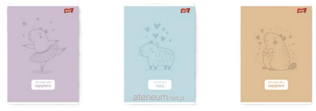 Zeszyt A5 32 kartki linia dwukolorowa okładka laminowana lakier miejscowy UV 70 g/m2 Pastel Capybara