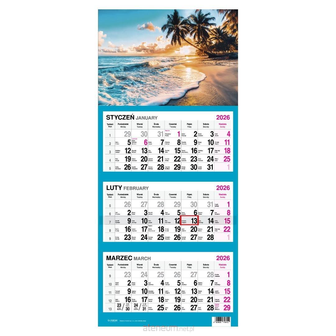Kalendarz 2026 Trójdzielny Palmy