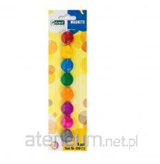 8 różnokolorowych magnesów, które rozjaśnią każdą tablicę, średnica magnesu 3 cm
