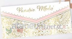 Kartka jest bogato i różnorodnie zdobiona (zależnie od wzoru: metaliczna folia, lakier perłowy,