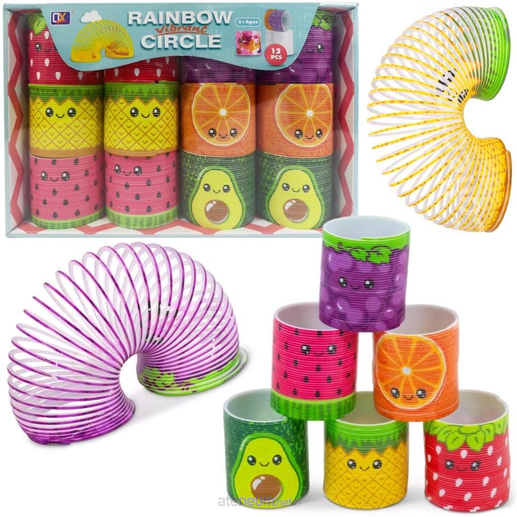 Rainbow Vibrant Circle - Magiczna Sprężynka z Owocami - 12 Sztuk Odkryj klasyczną zabawkę w nowej, owocowej odsłonie! Nasze Rainbow Vibrant Circle to kolorowe, rozciągliwe sprężynki ozdobione wizerunkami soczystych owoców. Ten zestaw 12 uroczych sprężynek zapewni mnóstwo radości i zabawy zarówno dzieciom, jak i dorosłym. Kluczowe cechy produktu: Klasyczna zabawa z owocowym twistem: Tradycyjna sprężynka Slinky zyskała nowy, apetyczny wygląd dzięki wesołym grafikom przedstawiającym truskawki, ananasy, awokado, pomarańcze, arbuzy i winogrona. Efekt tęczy: Kolorowe segmenty sprężynki tworzą efekt tęczy podczas rozciągania i poruszania, co dodatkowo przyciąga wzrok i zachęca do zabawy. Rozwój motoryki: Zabawa sprężynką pomaga w rozwijaniu koordynacji wzrokowo-ruchowej, zręczności i precyzji ruchów. Właściwości antystresowe: Delikatne rozciąganie i kurczenie sprężynki może mieć działanie relaksujące i antystresowe, pomagając w zajęciu rąk i odprężeniu. Wysoka jakość: Wykonane z elastycznego i trwałego tworzywa, sprężynki zachowują swoją formę i sprężystość nawet podczas intensywnej zabawy. Są odporne na odkształcenia i niełatwo się plączą. Zestaw 12 sztuk: Duże opakowanie zawiera aż 12 kolorowych sprężynek z różnymi motywami owocowymi, co czyni je idealnymi na upominki, nagrody lub do zabawy w grupie. Idealny rozmiar: Sprężynki doskonale leżą w dłoni, a ich kompaktowy rozmiar sprawia, że można je zabrać ze sobą wszędzie. Świetny pomysł na drobny upominek: Rainbow Vibrant Circle z owocami to doskonały drobny prezent na urodziny, upominek do paczki czy nagroda w konkursach. Wielkość: 7x7x7cm Dostępne wzory owoców: W zestawie znajduje się po dwie sprężynki z wizerunkami: Truskawki Ananasy Awokado Pomarańcze Arbuzy Winogrona Zapewnij mnóstwo kolorowej i owocowej zabawy z naszym zestawem Rainbow Vibrant Circle! To prosta, a zarazem niezwykle wciągająca zabawka, która nigdy się nie nudzi!