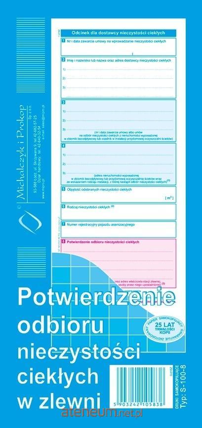 Potwierdzenie odbioru nieczystości ciekłych w zlewni S-100-8