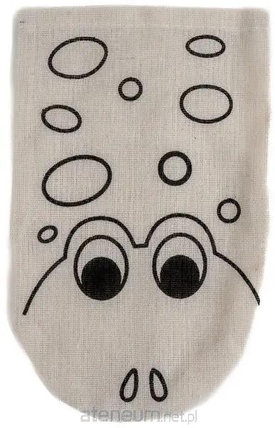 płócienna kukiełka ze wzorem do malowania markerami akrylowymi, wymiary 12 x 20 cm