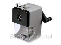 Temperówka na korbkę z mocowaniem do biurka. Wyposażona w przezroczysty duży pojemnik na ścinki. Czujnik zakończenia ostrzenia. Ostrze i zacisk z wysokiej jakości stali. Ostrzy kredki i ołówki do średnicy 12 mm. Kolor: niebieski.