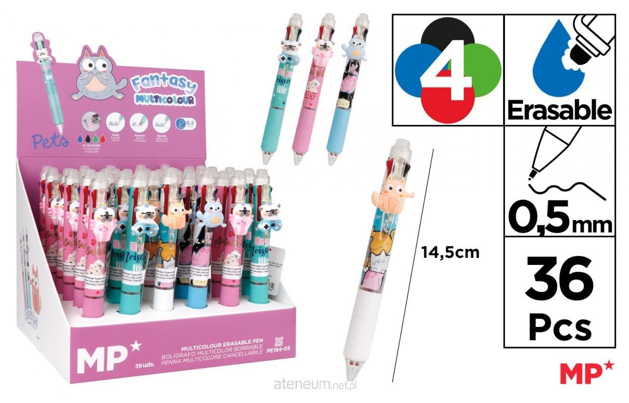 Długopis ścieralny 4-kolorowy Psy i Koty (36szt)