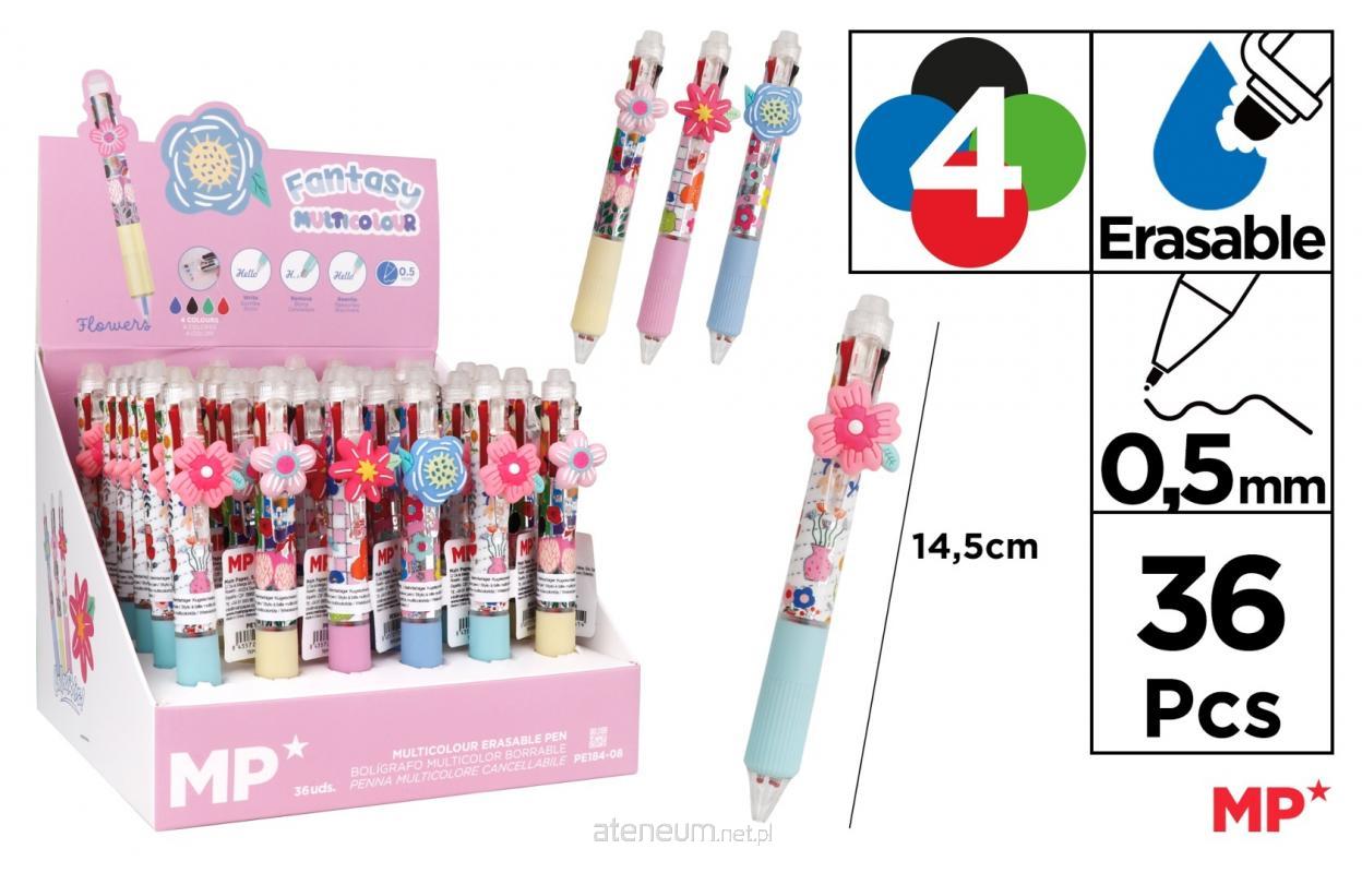 Długopis ścieralny 4-kolorowy Kwiaty (36szt)