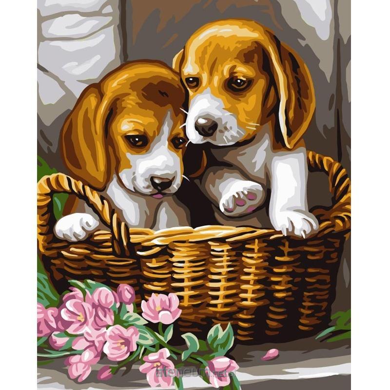 Malowanie po numerach 40x50cm Pieski w koszyku