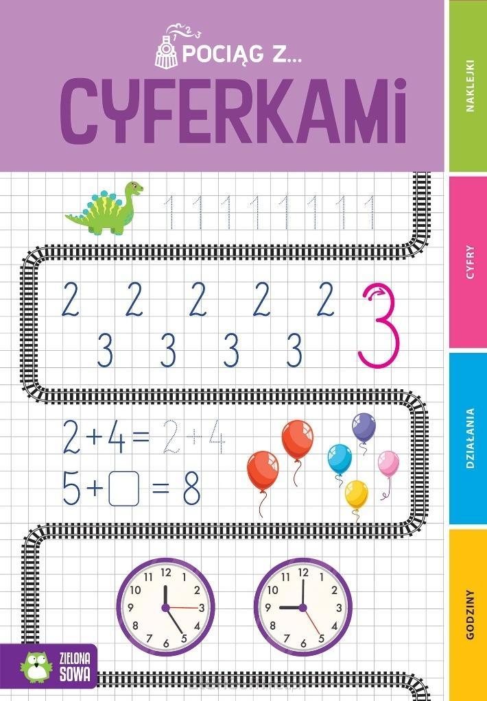 "Pociąg z cyferkami" to zeszyt ćwiczeń, która odkryje przed dzieckiem świat cyfr: pomoże w nauce poprawnego zapisu cyfr, liczenia elementów w zbiorach oraz zapozna z prostymi działaniami matematycznymi. Przy okazji zapewni też świetną zabawę: zawiera wiele kreatywnych zadań rozbudzających ciekawość oraz obrazki do pokolorowania i naklejki. Dzięki temu nauka stanie się przyjemnością!